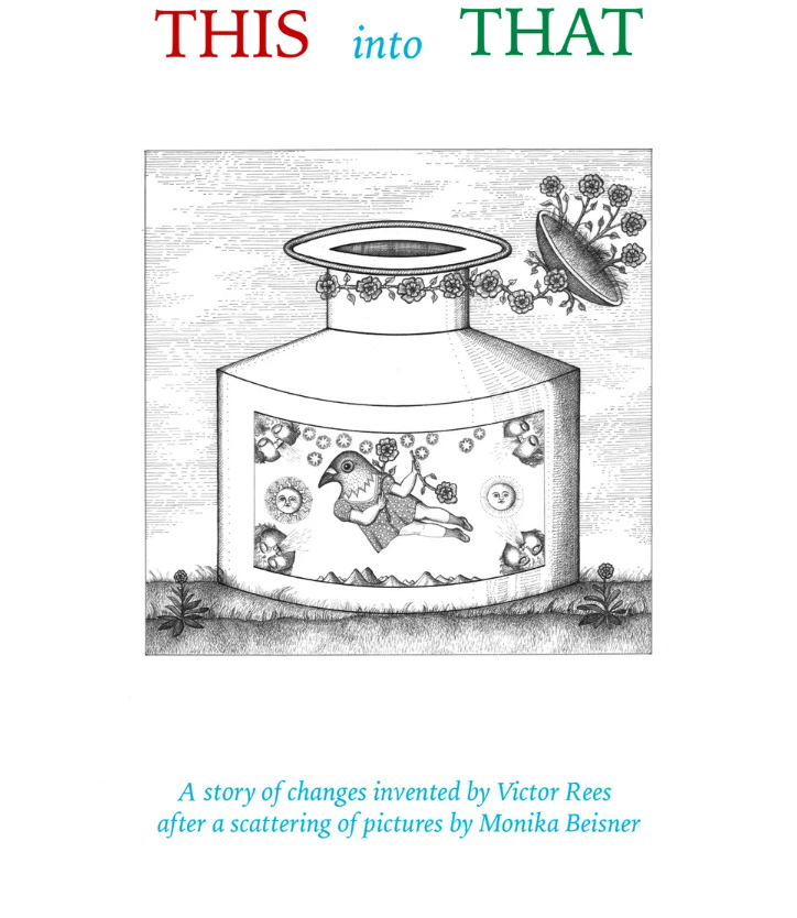 A story of changes, a children’s alchemical primer. This into That is itself a work of metamorphosis, using images produced in 1974 but never published as the basis for a brand new tale, creating new meanings and narratives out of the old. It tells the story of young girl who ventures first through the kingdom of the beasts of earth, then the kingdom of the beasts of air, and finally the kingdom of the beasts of water.